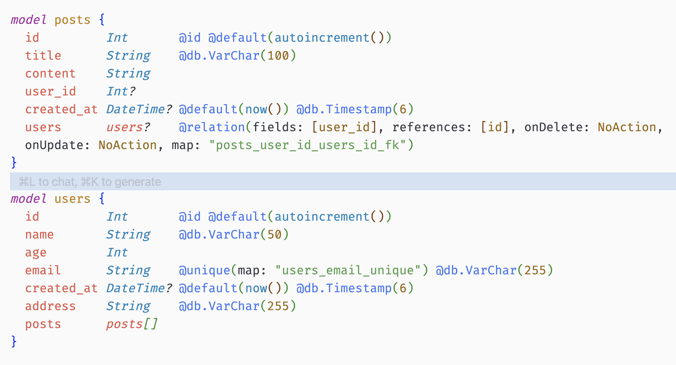schema.prisma手寫的話有點學習成本,需要按照 Prisma 特有的語法去寫。